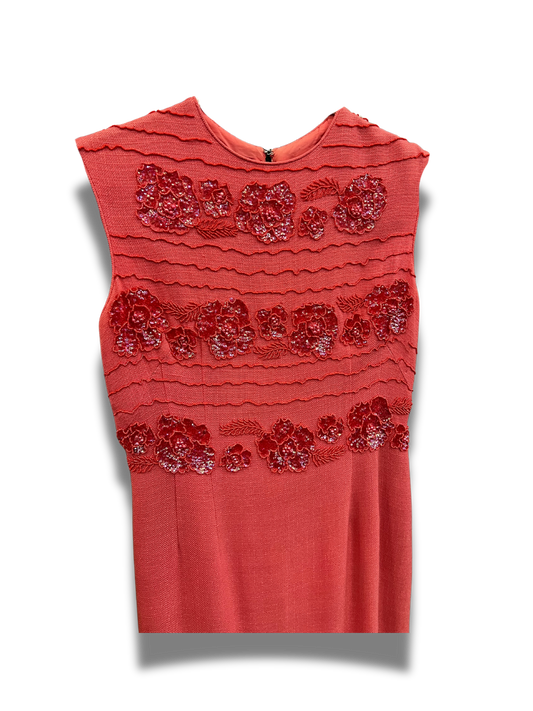 Beaded Coral Shift Dress