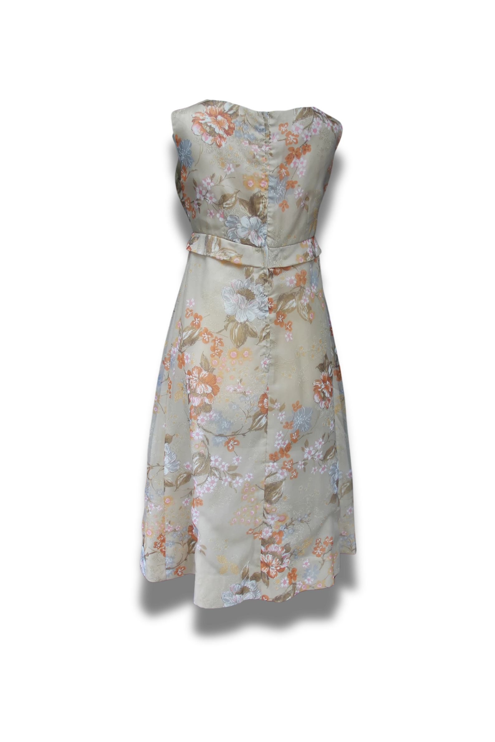 Turn heads with this breathtaking 1960s cocktail dress by Irving Nadler, a true testament to vintage glamour. Designed in a flattering fit-and-flare silhouette, this piece is all about timeless sophistication. The delicate nude floral print offers a soft, feminine charm, while the tailored bodice and flowing midi skirt create an effortlessly graceful look. Pair it with classic heels and a touch of sparkle to complete your vintage-inspired look, this Irving Nadler masterpiece promises to make you feel utterly unforgettable.